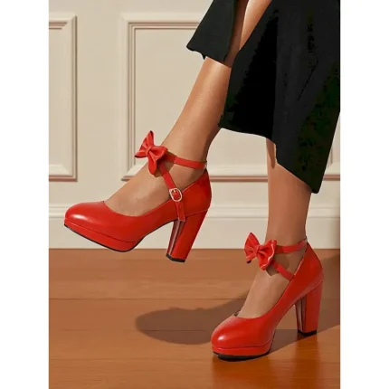 Women’s Light Blue Platform Mary Jane Heels – Vintage 1950s Lolita Style Chunky Block Heels with Bow Ankle Strap, Perfect for Weddings, Cosplay and Elegant Evening Parties