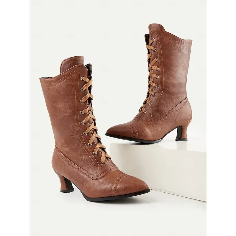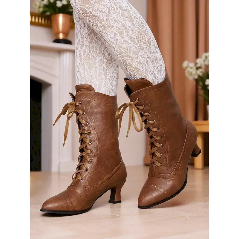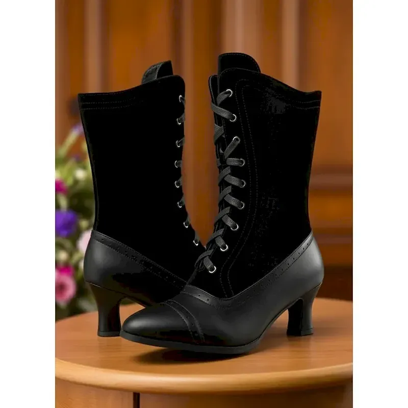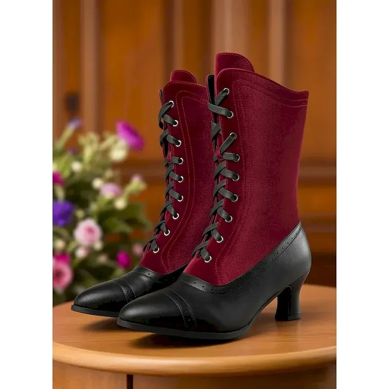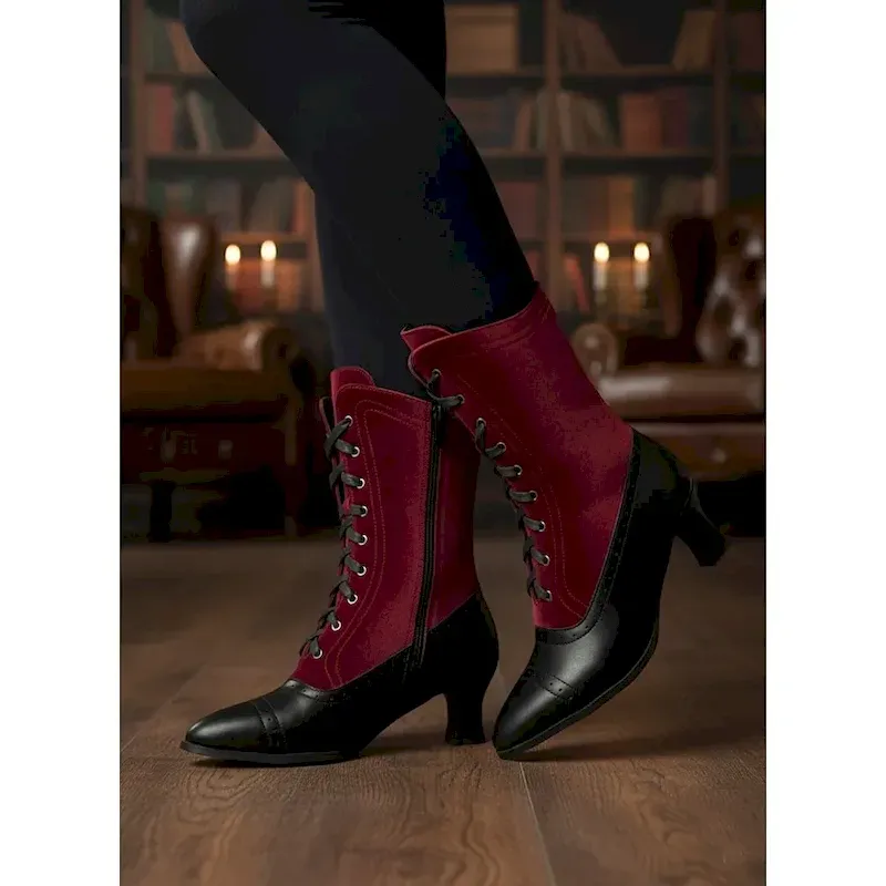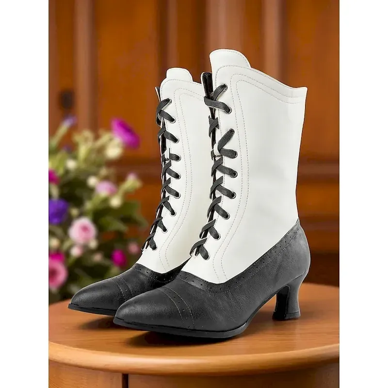 Women’s 1900s-1910s Edwardian Lace-Up Ankle Boots – Two-Tone Low Heel Victorian Style Booties for Costume Parties,Vintage Tea Events and Historical Reenactments