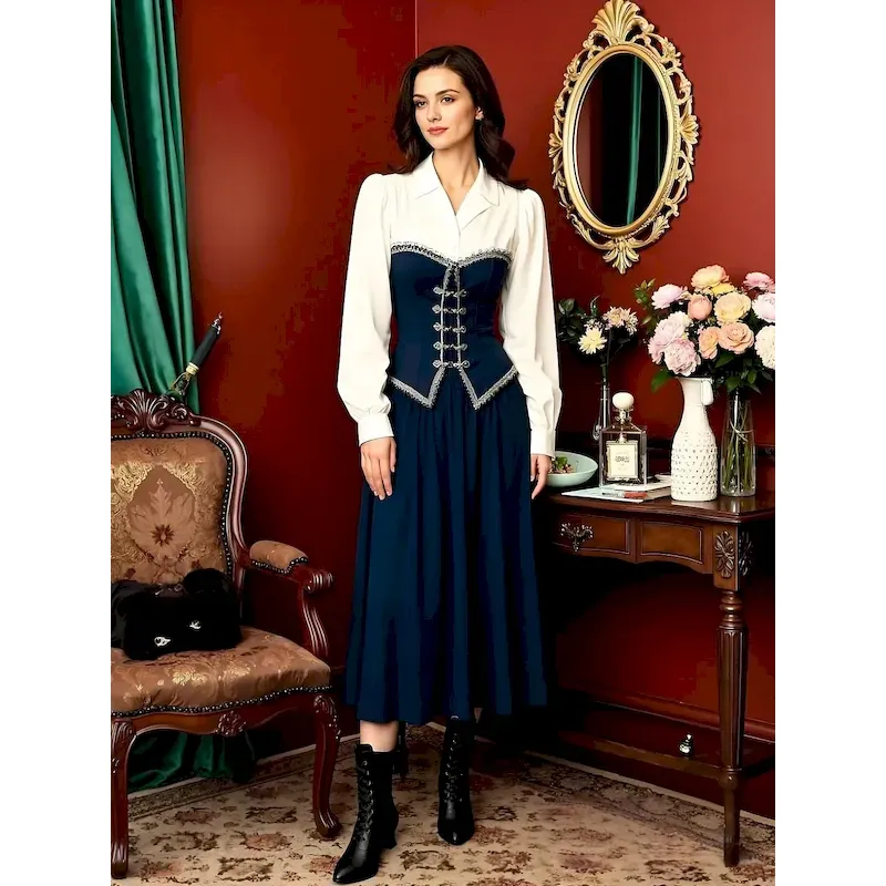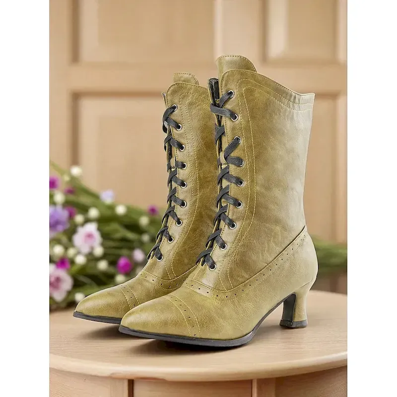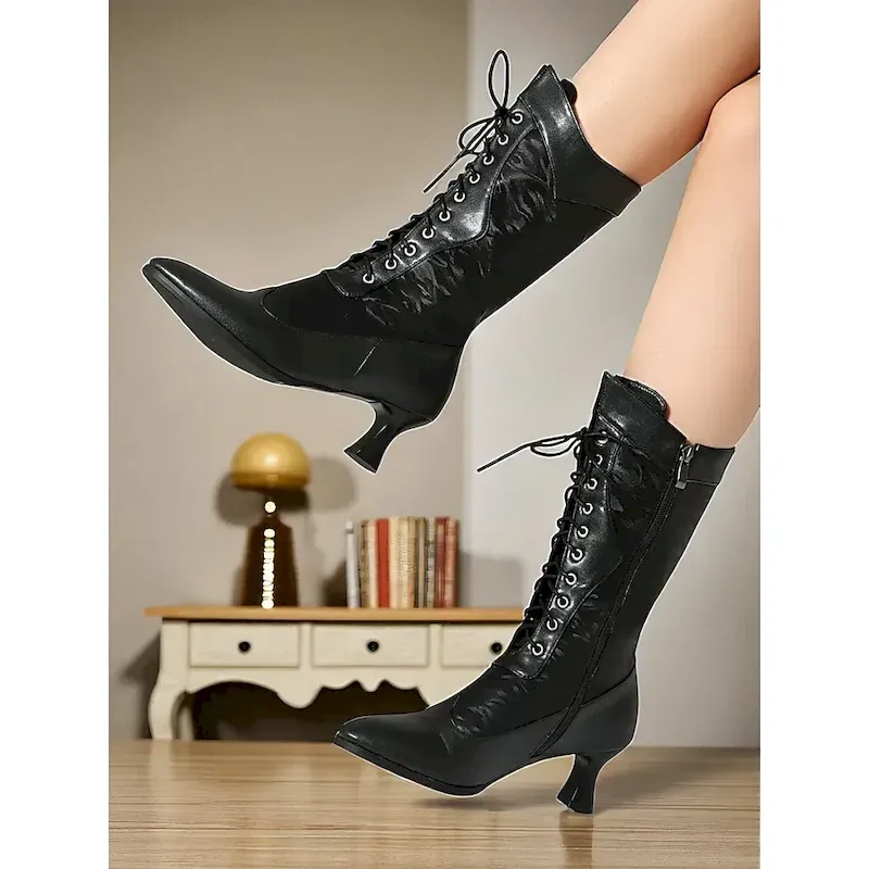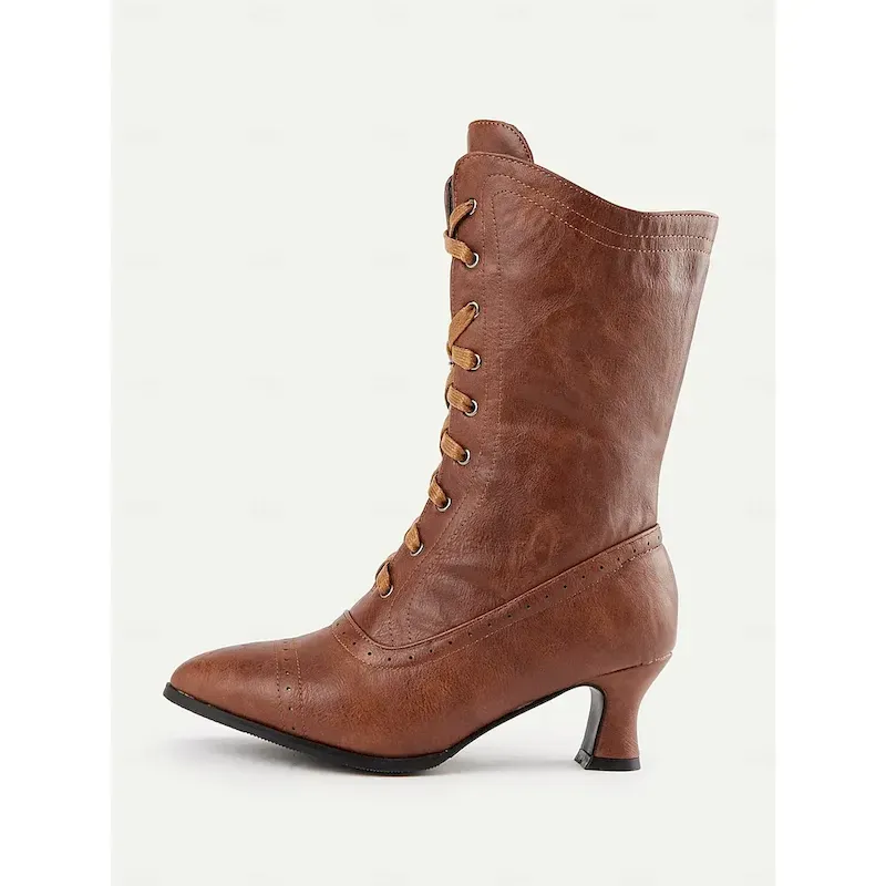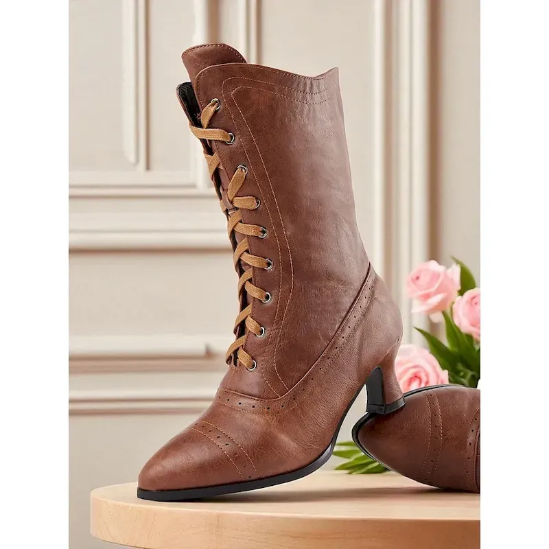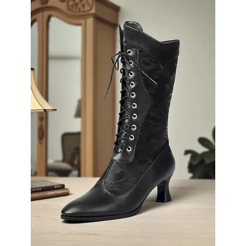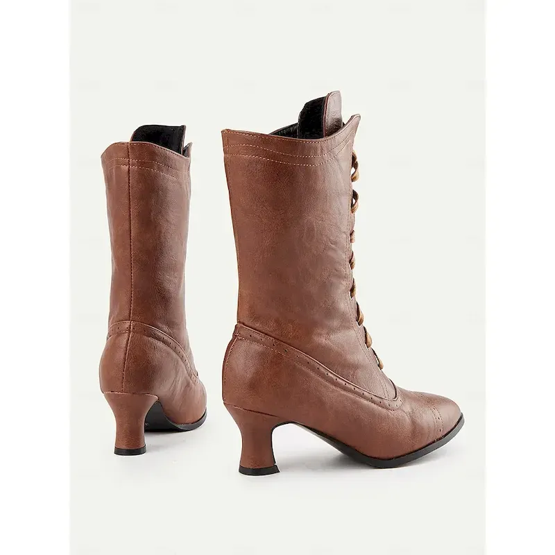 Women’s 1900s-1910s Edwardian Lace-Up Ankle Boots – Two-Tone Low Heel Victorian Style Booties for Costume Parties,Vintage Tea Events and Historical Reenactments