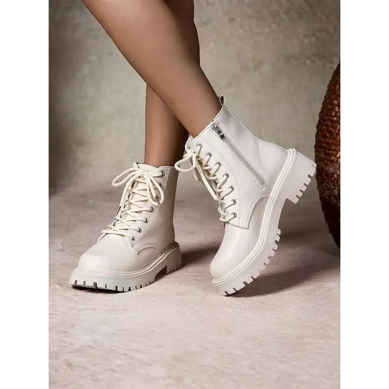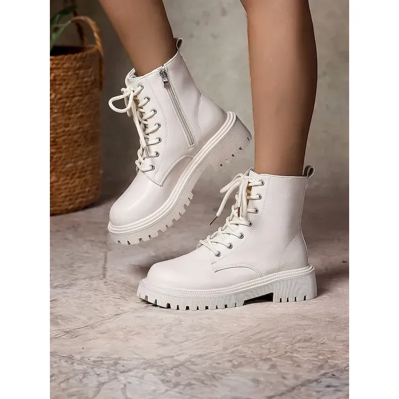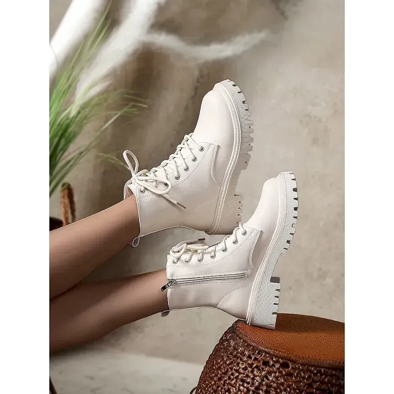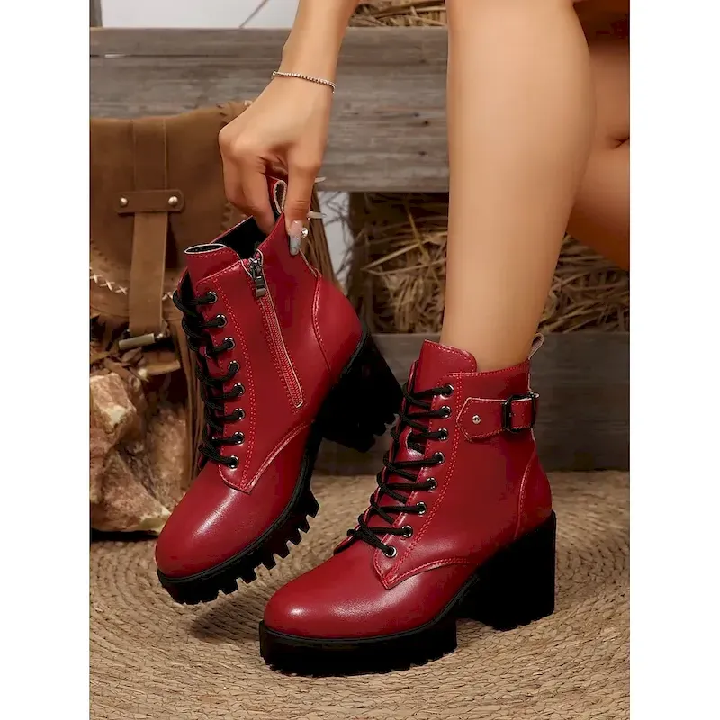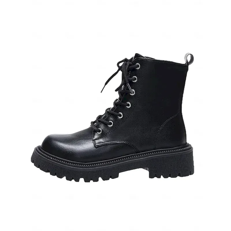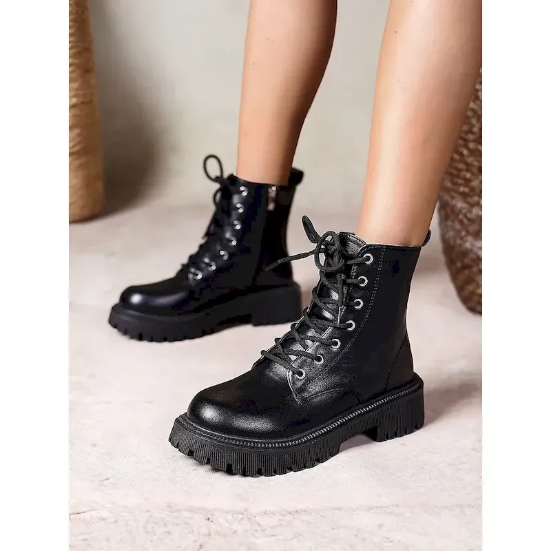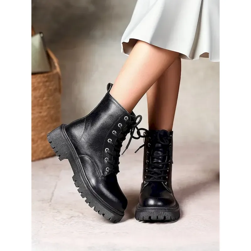 Women’s Black Leather Lace – Up Combat Boots, Edgy Style for Urban Fashion, Ideal for City Streetwear & Daily Outfits