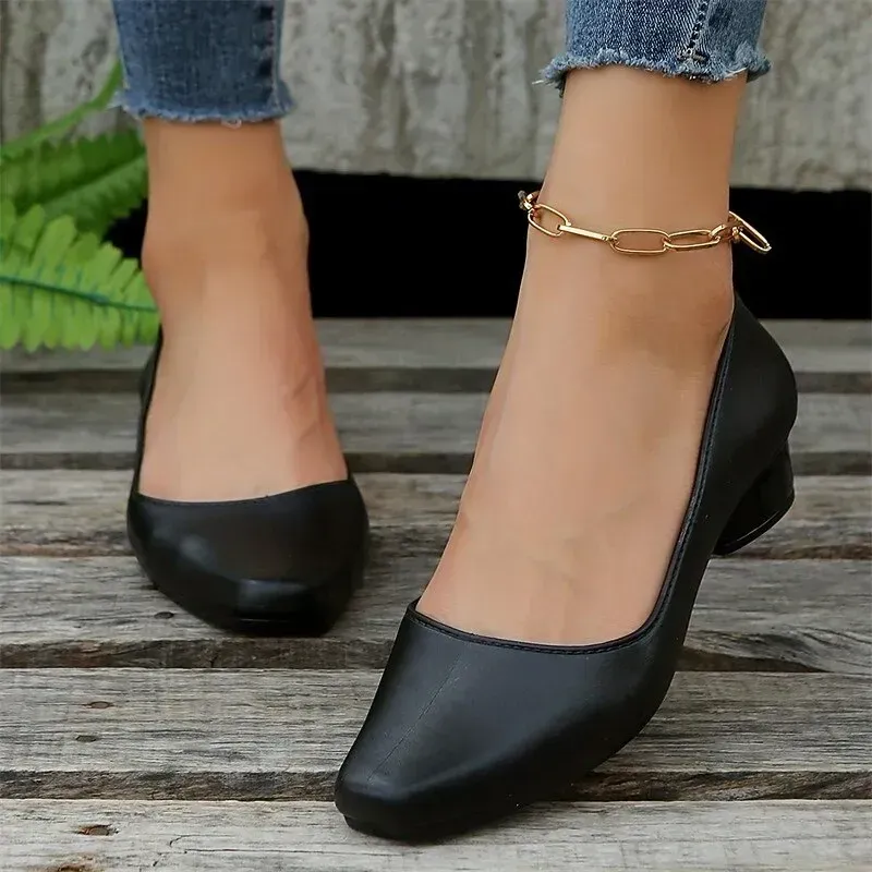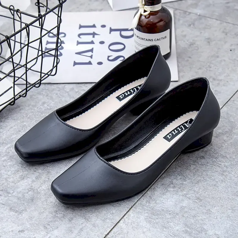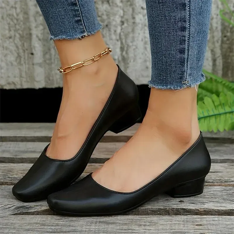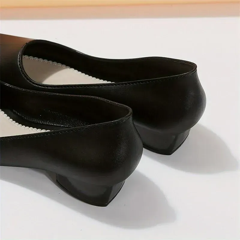 Women’s Black Low Heel Pumps – Classic Round Toe Slip-On Shoes for Office, Work, and Formal Occasions