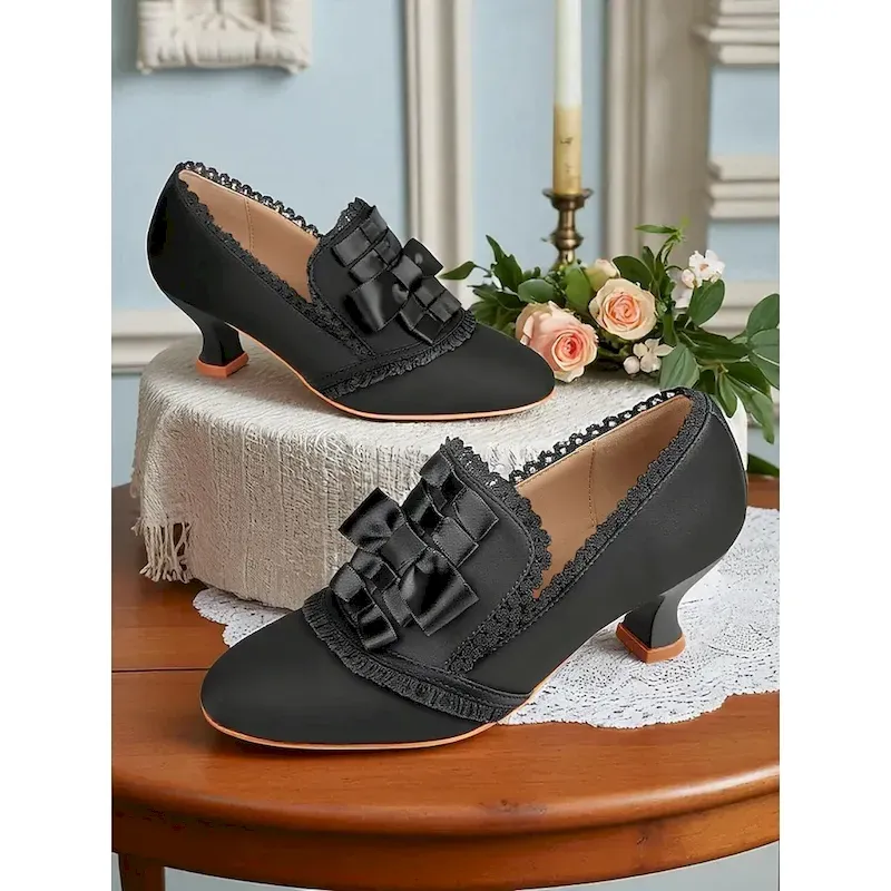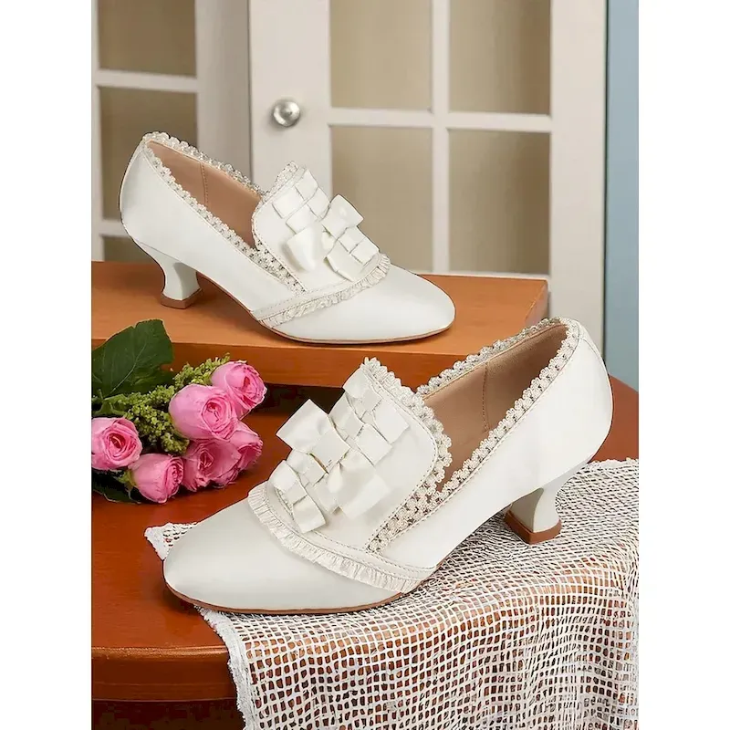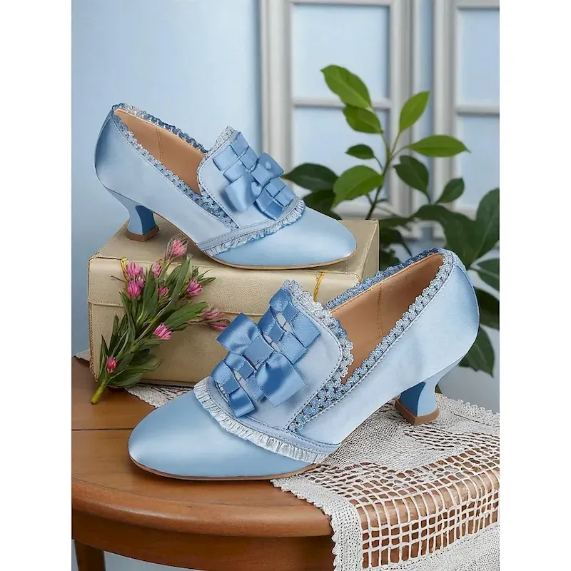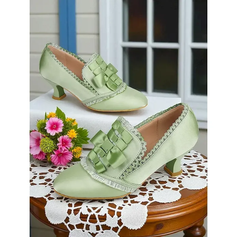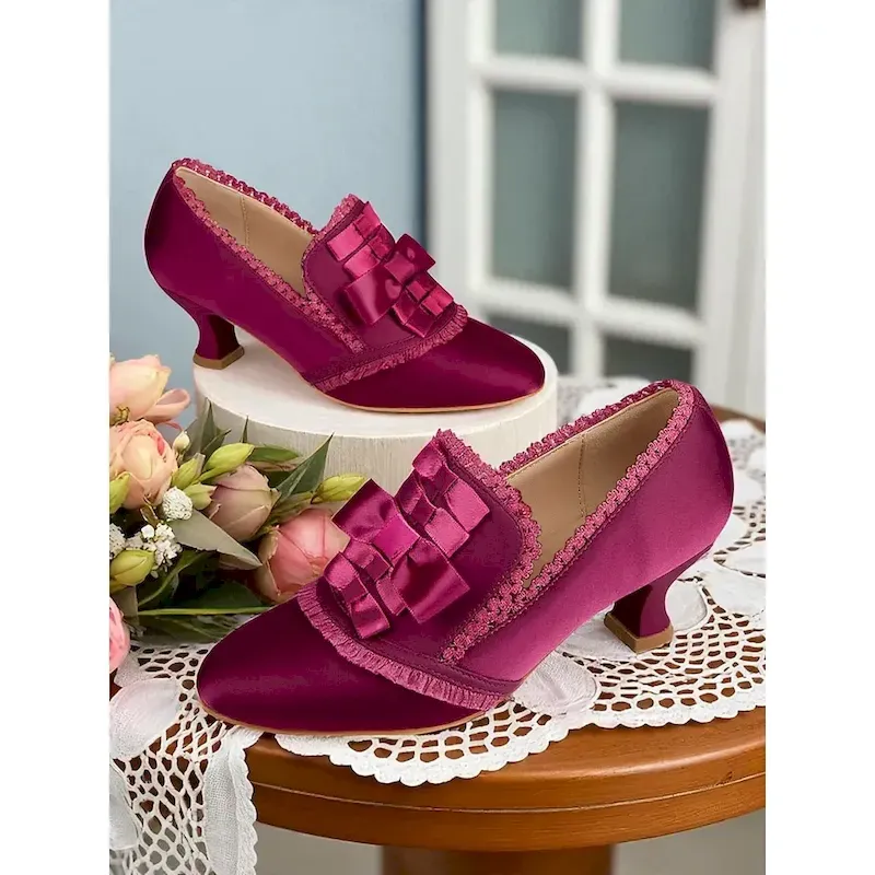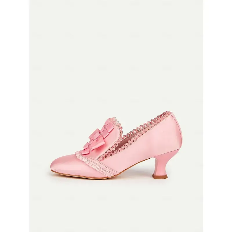 Women’s Pink Satin Bow Heels with Kitten Heel – 18th Rococo Victorian Court Style Dress Shoes for Cosplay, Tea Party and Historical Reenactments