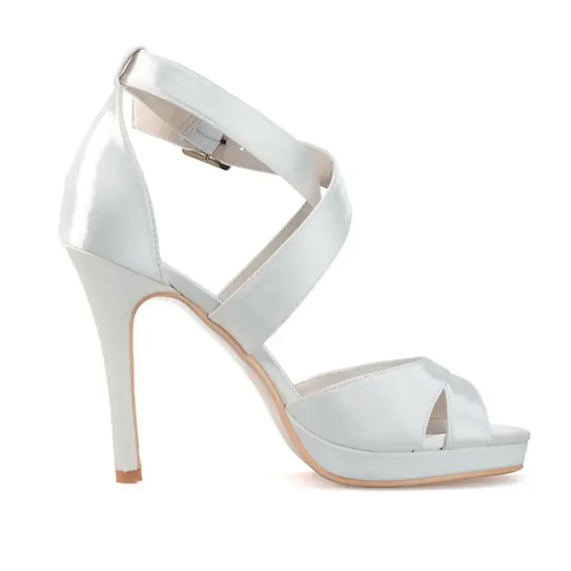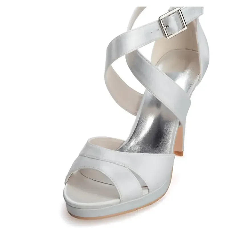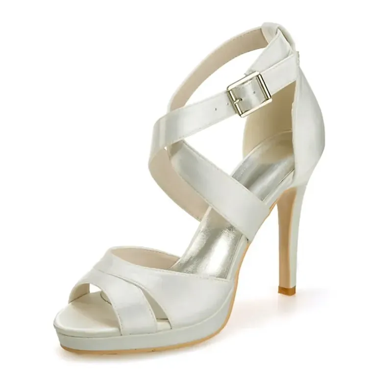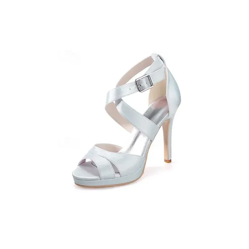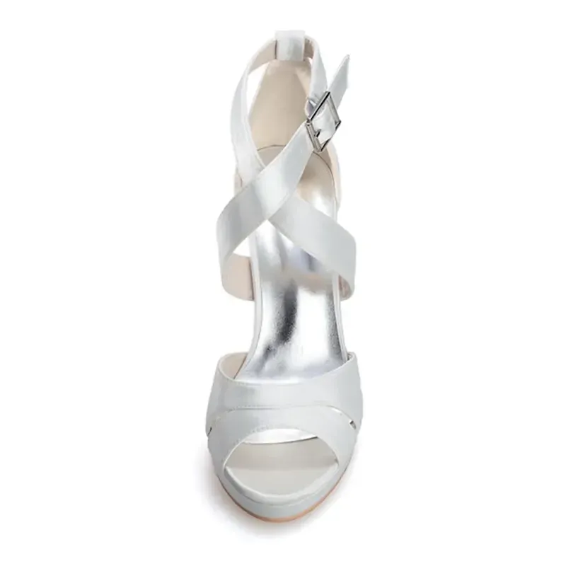[Fabric] Crafted from luxurious satin with a smooth finish, these women’s high heel sandals offer an elegant sheen. The insole is made from soft leatherette, providing comfort with every step. [Style] These sandals feature a sophisticated and feminine silhouette, with crisscross straps and a stylish buckle that adds a touch of glamour. The slender stiletto heel paired with an open-toe design gives a modern and chic update to traditional wedding shoes. [Design Highlights] The concealed platform subtly enhances height and stability while ensuring ease of wear for long durations. The ankle strap provides a secure fit, and the buckle adds an elegant detail to the ensemble. [Occasions] Perfect for weddings, parties, and evening events, these sandals are a versatile choice for bridal wear, bridesmaid duties, or any formal gathering. They add a sophisticated and stylish flair to any special occasion. [Size Information] Available in a range of sizes to ensure the perfect fit, these sandals come in US5 to US10.5, accommodating a variety of foot sizes and ensuring comfort and style for everyone.OK