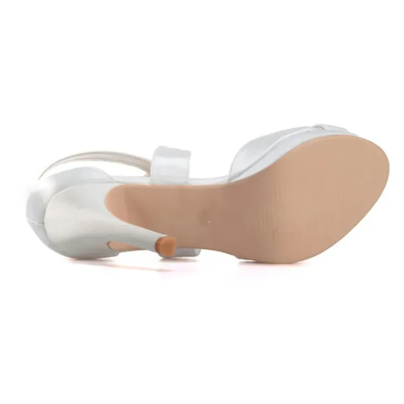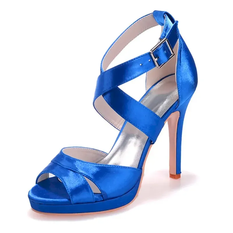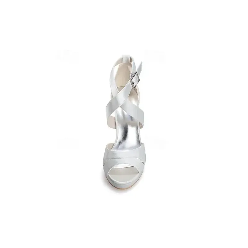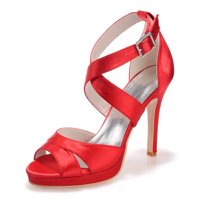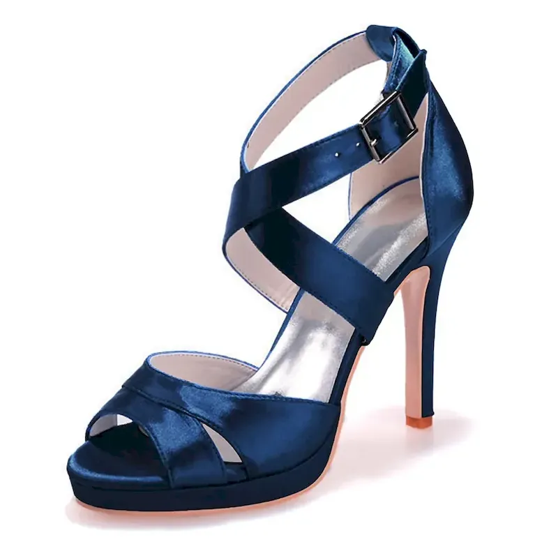 [Fabric] Crafted from luxurious satin with a smooth finish, these women’s high heel sandals offer an elegant sheen. The insole is made from soft leatherette, providing comfort with every step. [Style] These sandals feature a sophisticated and feminine silhouette, with crisscross straps and a stylish buckle that adds a touch of glamour. The slender stiletto heel paired with an open-toe design gives a modern and chic update to traditional wedding shoes. [Design Highlights] The concealed platform subtly enhances height and stability while ensuring ease of wear for long durations. The ankle strap provides a secure fit, and the buckle adds an elegant detail to the ensemble. [Occasions] Perfect for weddings, parties, and evening events, these sandals are a versatile choice for bridal wear, bridesmaid duties, or any formal gathering. They add a sophisticated and stylish flair to any special occasion. [Size Information] Available in a range of sizes to ensure the perfect fit, these sandals come in US5 to US10.5, accommodating a variety of foot sizes and ensuring comfort and style for everyone.OK