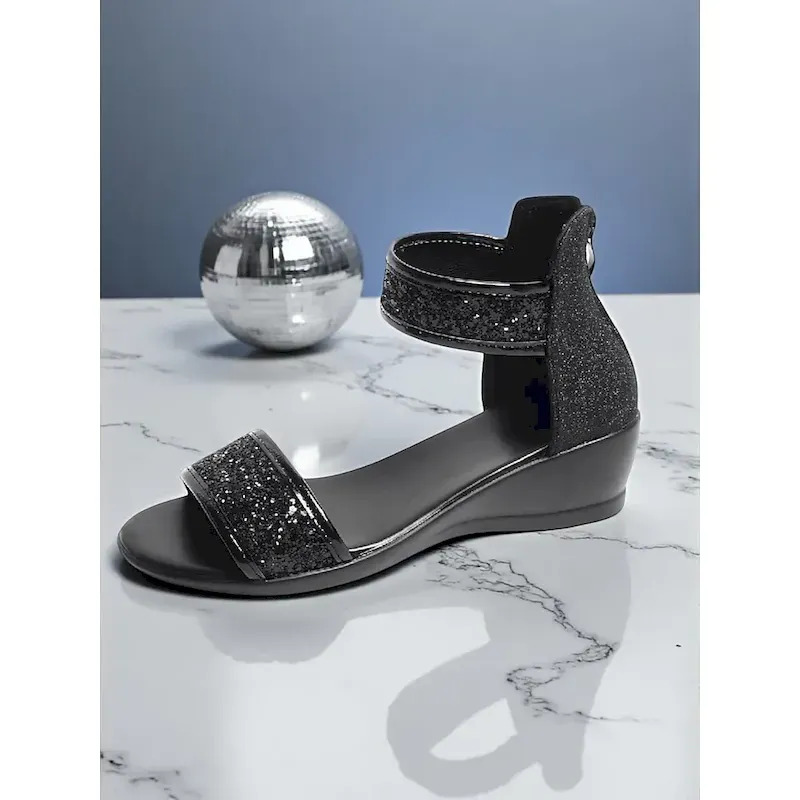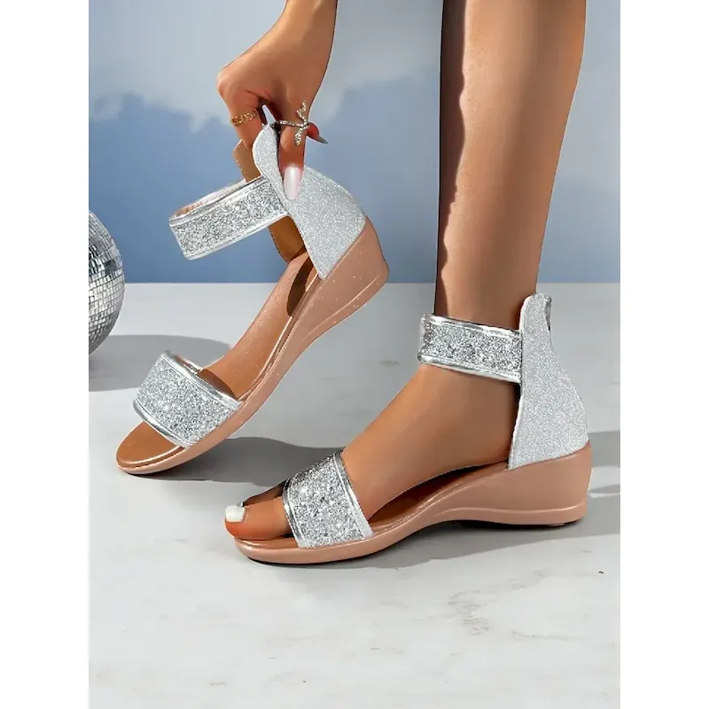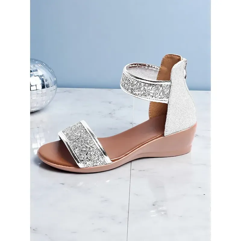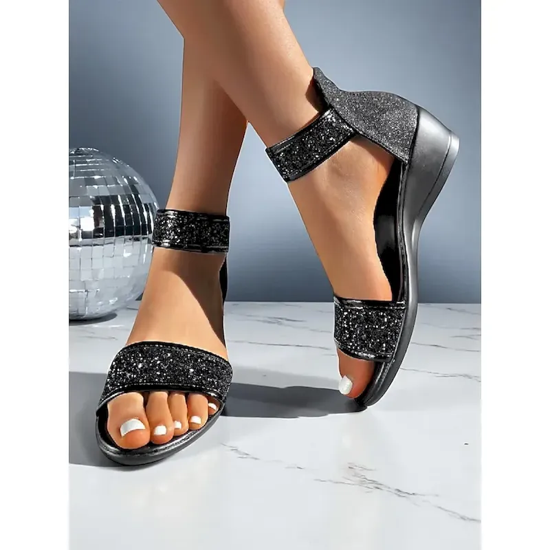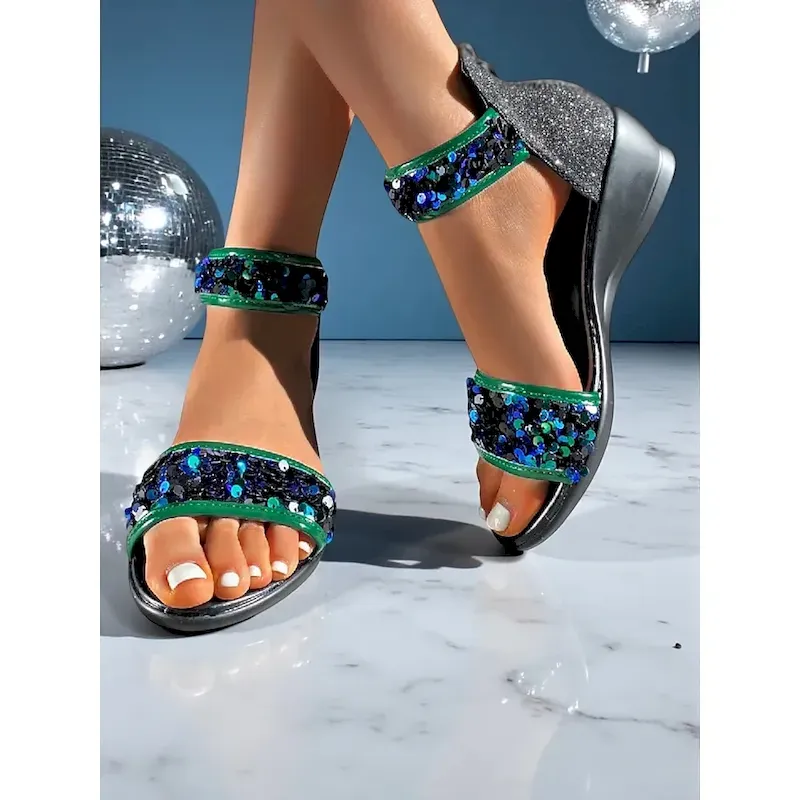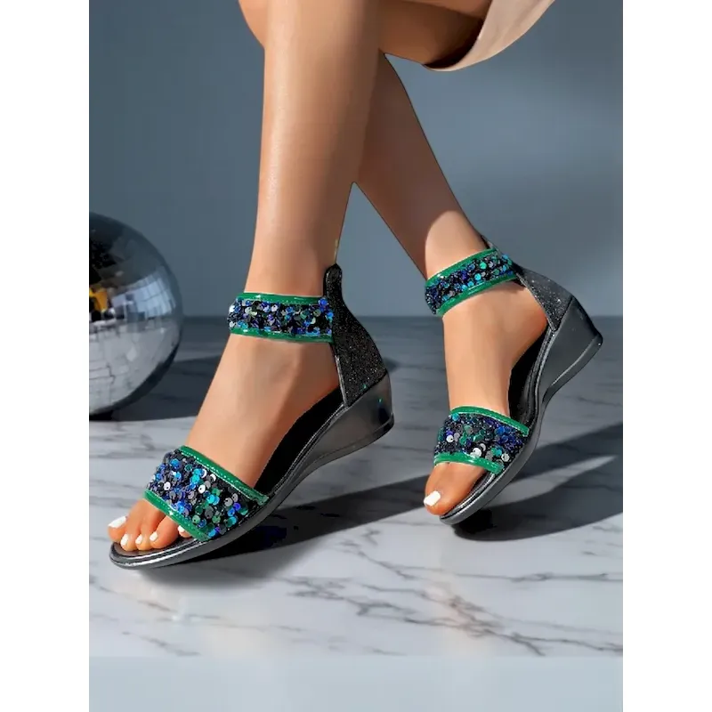 Women’s Sequin Ankle Strap Wedge Sandals – Glitter Open Toe Party Shoes for Nightlife and Dance Club Outfits